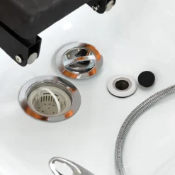 The wash unit is equipped with a mixer tap, allowing for precise adjustment of water temperature to the client’s needs. A dedicated space for the shower head improves efficiency, while a chrome-plated plug with a special strainer ensures water flow control and maintains a high level of hygiene. The water connection is located inside the base, behind the fabric, aesthetically concealing the plumbing and giving the entire unit an elegant look. The ergonomically contoured bed ensures comfort during various beauty treatments. A practical pouffe complements the unit, increasing staff comfort and enhancing the functionality of the unit. These features make the wash unit ideal for both hair and SPA salons.