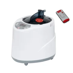 The intuitive touch panel allows for full control over treatment parameters and ease of use. It allows you to adjust the operating time and water temperature, as well as monitor their current values on a clear, easy-to-read display. Additionally, the panel allows you to activate the light therapy function, which illuminates the bowl, creating an atmosphere of relaxation and luxury. The set also includes a remote control, which allows you to conveniently control the steam therapy device from a distance.