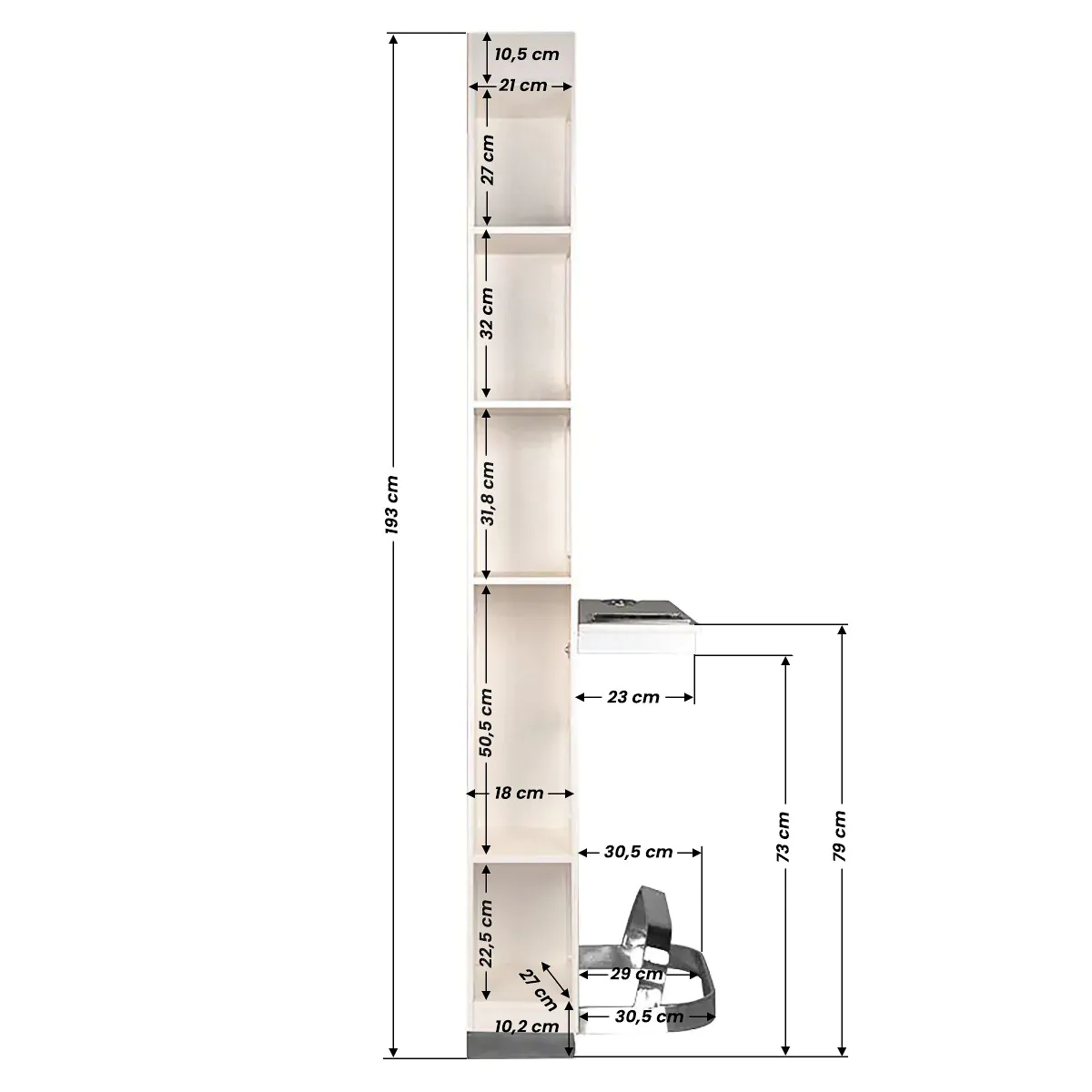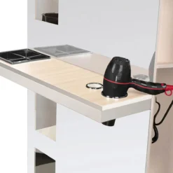 Moderni kampaamon peilipaikka, jossa iso peili ja kätevät hyllyt molemmin puolin. Hyllyjen sisältö näkyy yhdeltä puolelta ”ikkunoiden läpi”. Paino 80kg. Toimitus 6-9 työpäivää.