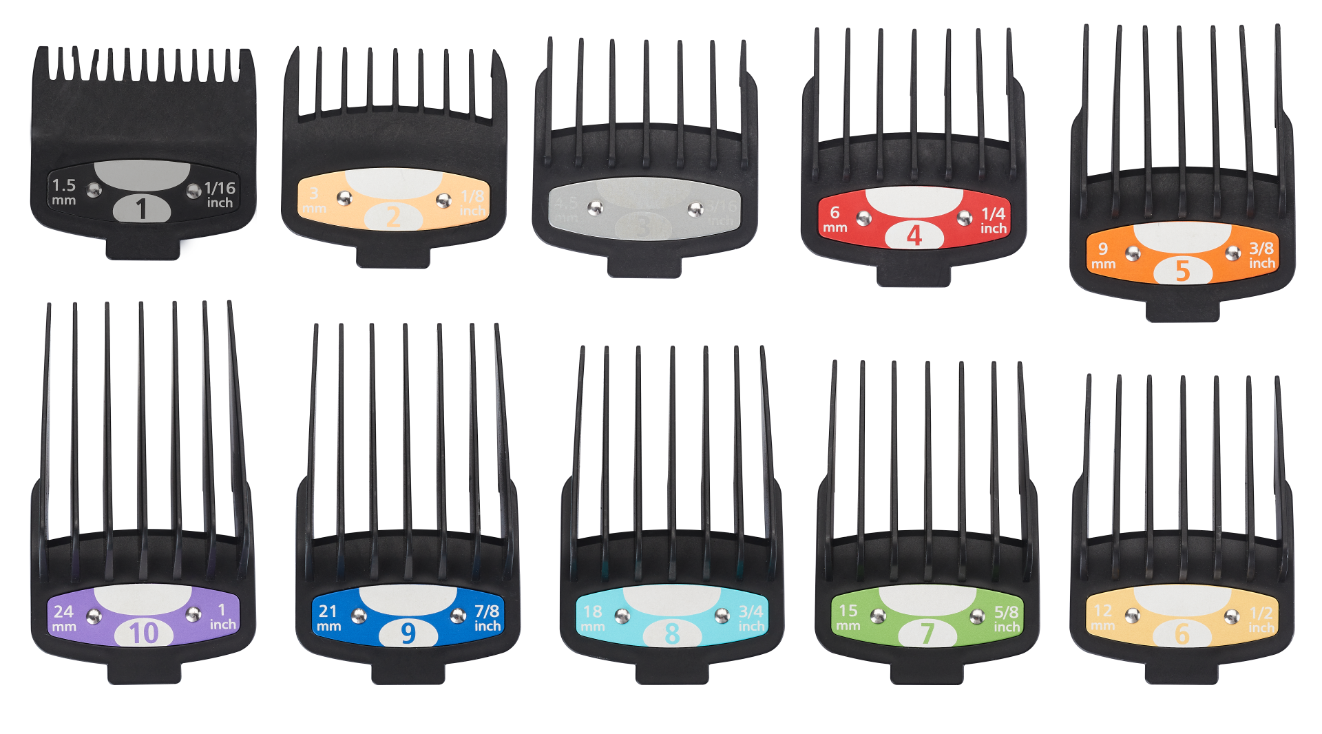 - Incl. 10 metal comb attachments (1.5 / 3 / 4.5 / 6 / 9 / 12 / 15 / 18 / 21 / 24 mm)