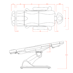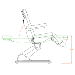 Hoitotuoli Weelko Tempo, 3:lla moottorilla. Weelko Tempo hoitotuoli on suunniteltu erityisesti optimoimaan työtila ja tuolin voi tehdä sen ansiosta 240° kiertoliikkeen. Hoitolatuoli hierontaan, kosmetologeille, ripsiteknikoille. Hoitotuoli on varustettu kolmella sähkömoottorilla, jotka säätävät hoitotuolin korkeutta, selkänojaa ja istuimen kallistusta. Jalkatukea säädetään kaasujousella, käsinojat on mahdollista kääntää taakse, päätuki säädettävissä. Laadukas ja helposti puhdistettava PU-verhoilu. Koko: Leveys 57cm (käsinojilla 82 cm). Korkeus: 56-89 cm. Pituus: 186 cm. Paino 92kg.