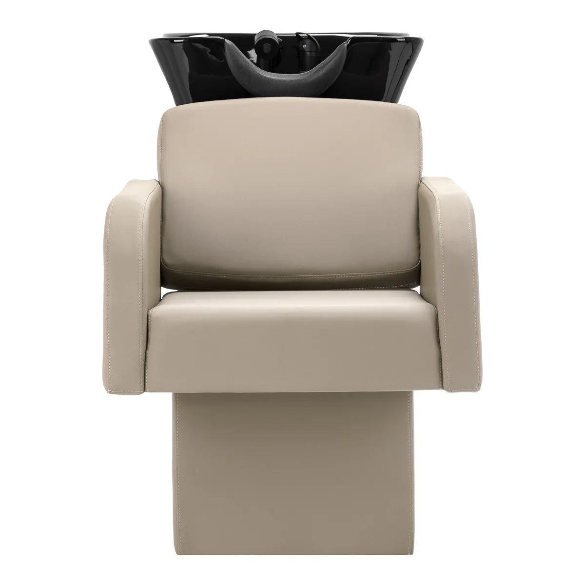 Kampaamon pesupaikka Armand Eld BB, gray and beige. Moderni kampaamon pesupaikka on yhdistelmä toimivuutta ja eleganssia. Pesupaikka on valmistettu korkealaatuisimmista materiaaleista ja täydellisesti viimeistelty. Pehmeä ja mukava istuin on päällystetty korkealaatuisella eko-tekonahalla. Pesupaikkassa on syvää musta keraaminen allas. Takuu 12 kk. Toimitus 8-10 työpäivää. Kaikki mitat kuvissa!