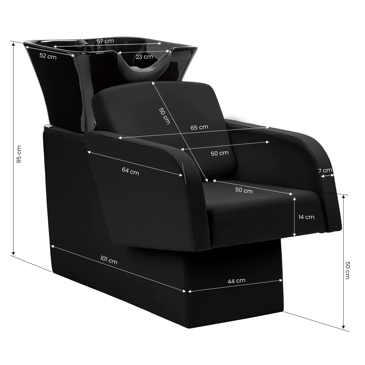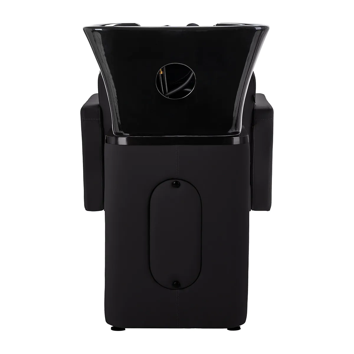 Kampaamon pesupaikka Armand Eld BB, musta. Moderni kampaamon pesupaikka on yhdistelmä toimivuutta ja eleganssia. Pesupaikka on valmistettu korkealaatuisimmista materiaaleista ja täydellisesti viimeistelty. Pehmeä ja mukava istuin on päällystetty korkealaatuisella mustalla eko-tekonahalla. Pesupaikkassa on syvää musta keraaminen. Takuu 12 kk. Toimitus 8-10 työpäivää. Kaikki mitat kuvissa!
