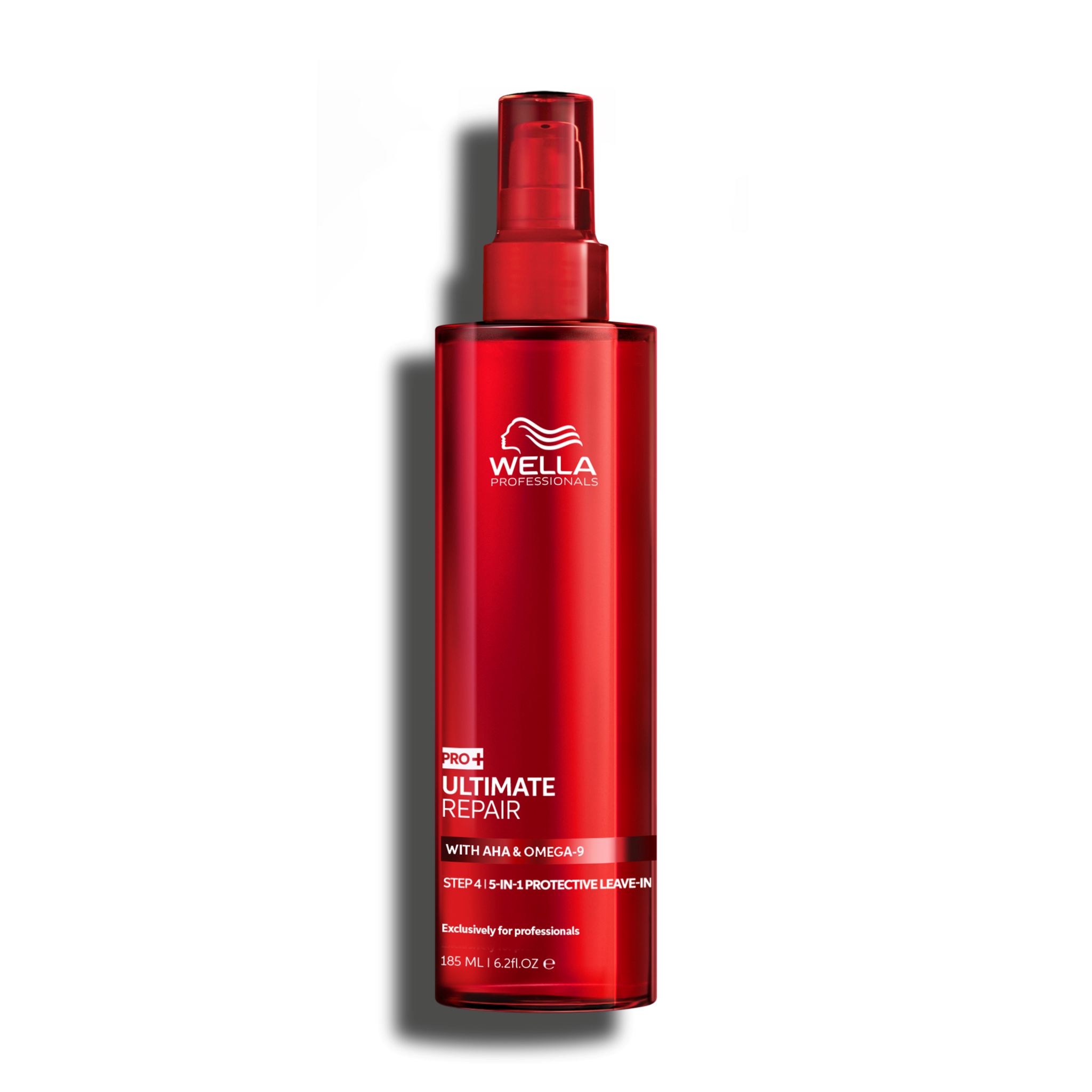Wella Professionals Ultimate Repair Protective Leave-in STEP 4 185ml. Wella Professionalsin Ultimate Repair Protective Leave-In on hellävarainen ja ylellinen hiusvoide, joka toimii seerumin tavoin. Se suojaa vaurioituneita hiuksia viideltä yleisimmältä huolenaiheelta: hiusten katkeilulta, UV-säteilyltä, kuumuudelta, mekaanisilta vaurioilta ja pörröisyydeltä. Tämä 5 in 1 -muotoilutuote korjaa näkyvästi vaalennettuja ja lämpökäsittelyn vaurioittamia hiuksia ja vähentää pörröisyyttä jopa 72 tunnin ajan*. Tekee hiuksista silkkisen pehmeät ja 8 kertaa sileämmät**. Sopii kaikille hiustyypeille.